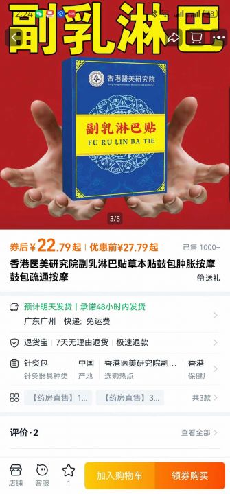 香港医美研究院副乳淋巴贴草本贴鼓包肿胀按摩鼓包疏通...