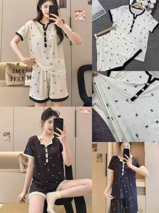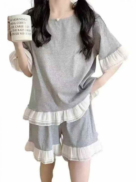 ☕️全部带胸垫⚠️韩系简约纯棉睡衣女款休闲花边短袖短裤宽松家居服套装25...