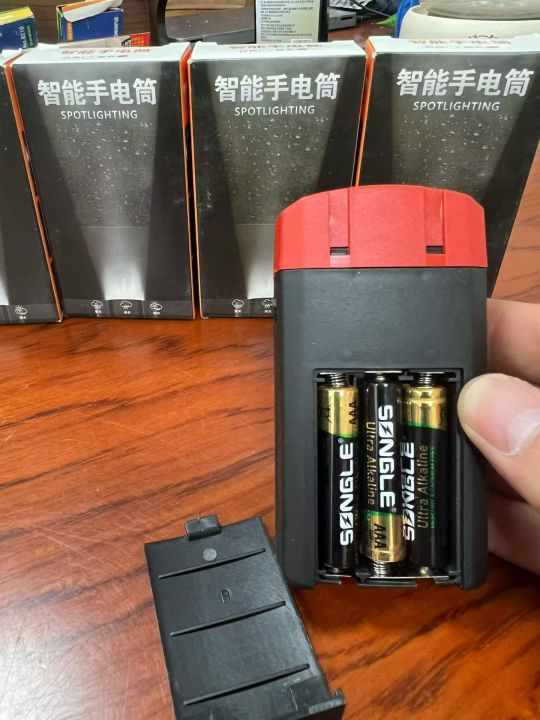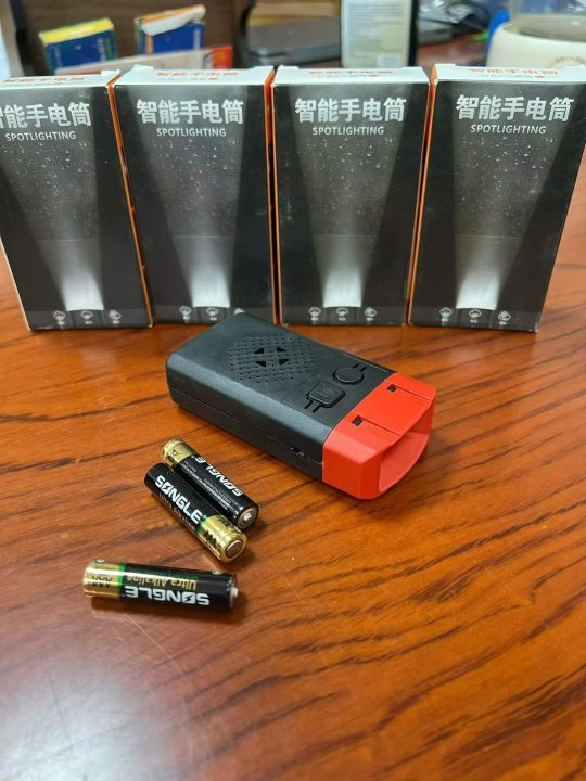 智能手电筒到货3000多个,独立彩盒包装,原箱原件,佩送3支电池,内置喇叭,强光LED,给钱就卖