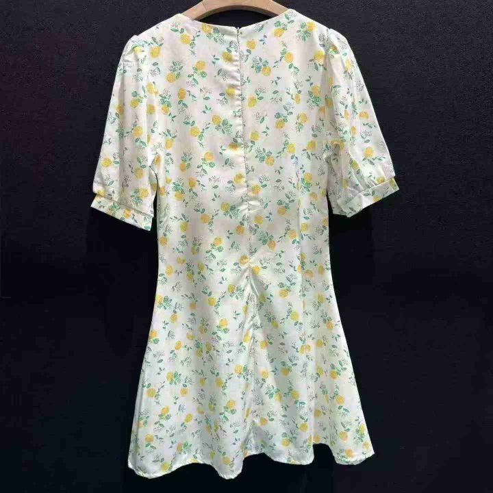 女装连衣裙整垮辣妹装大童装清新黄绿碎花前胸绑带背后拉链连衣裙