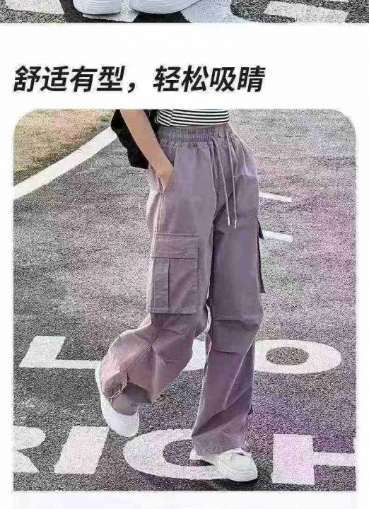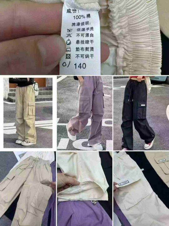女童工装裤春秋款百搭中大童宽松阔腿裤,整款四色,2163件 独立包装,货品干净,码数:120-170码,货号327#53