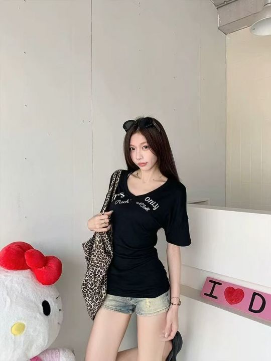 上新全清:5.8一件韩版V领设计感独特别致辣妹T恤,[爱心]130件左右,款号#1...