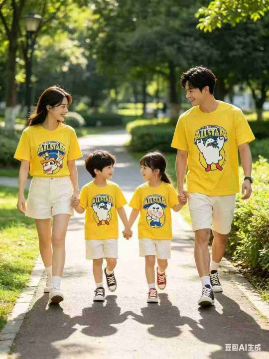 夏季亲子装短袖T,单色图案多码数齐独立包装成人S一5X...