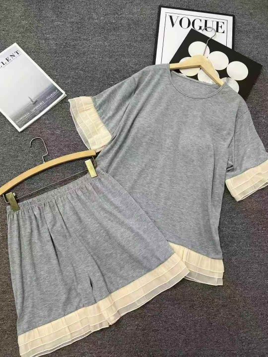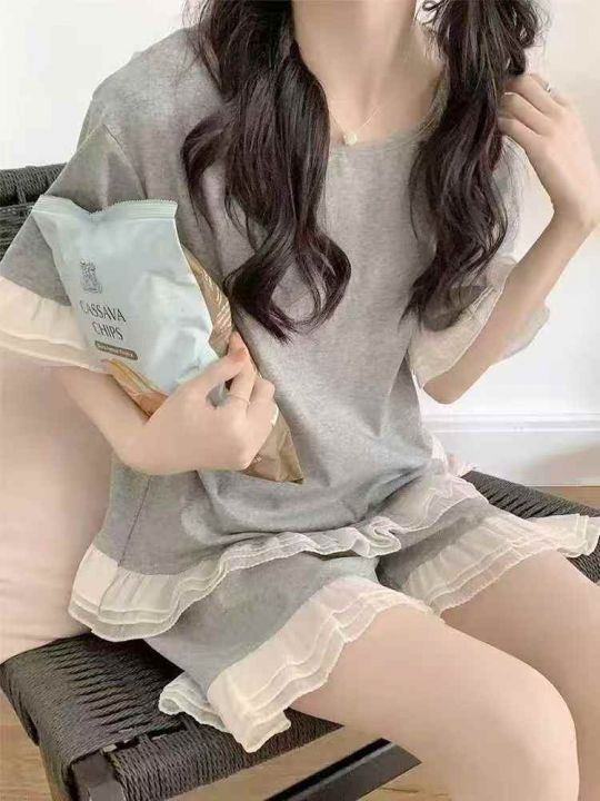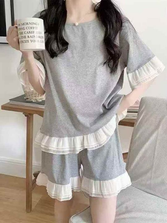 ☕️全部带胸垫⚠️韩系简约纯棉睡衣女款休闲花边短袖短裤宽松家居服套装250套全清9.8元,分货10.8元,码数M到XXL,单款单色,独立包装[庆祝][庆祝][庆祝]