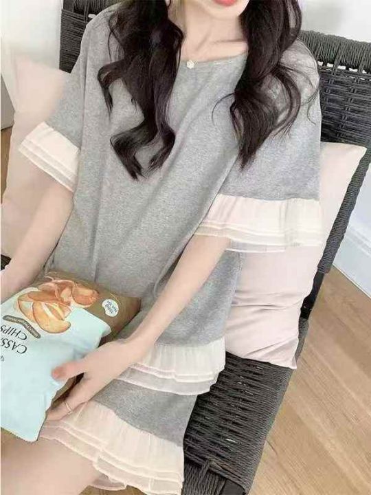 ☕️全部带胸垫⚠️韩系简约纯棉睡衣女款休闲花边短袖...