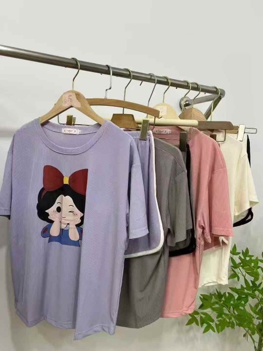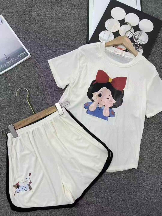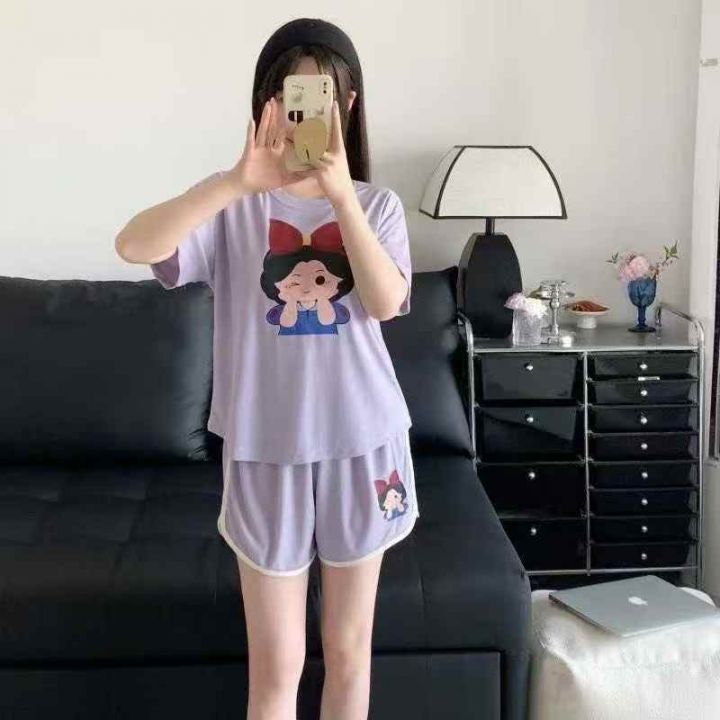 ☕️卡通带胸垫短袖短裤家居服睡衣套装328套全清9.8元,分货10.8元,码数M到XXL,高弹力,单款5个色,独立包装,夏季短袖冰丝罗纹宽松甜美可爱卡通家居服套装