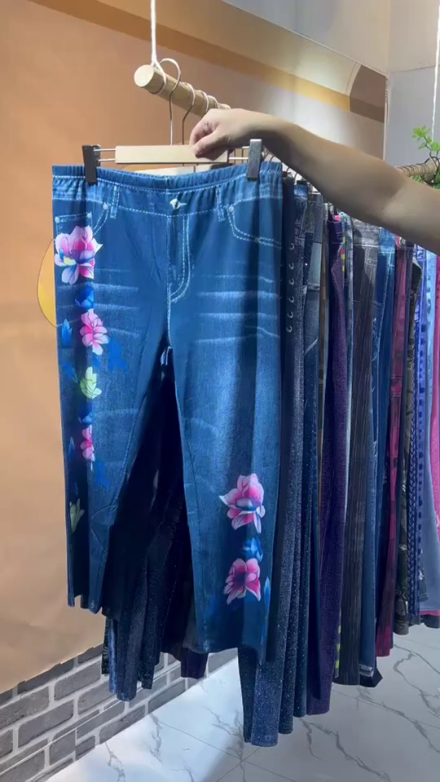 全清6.8元。5000条左右高弹力冰丝仿牛仔女裤,独立包装,码数XS-6XL,视频...