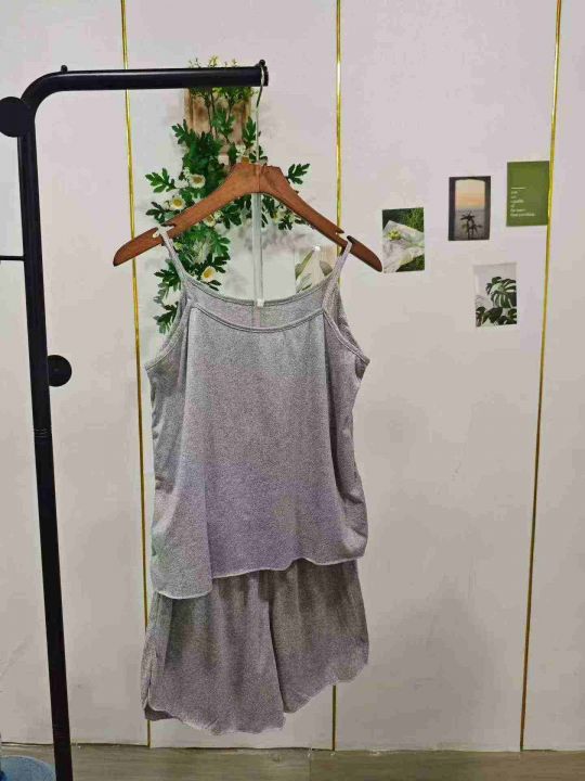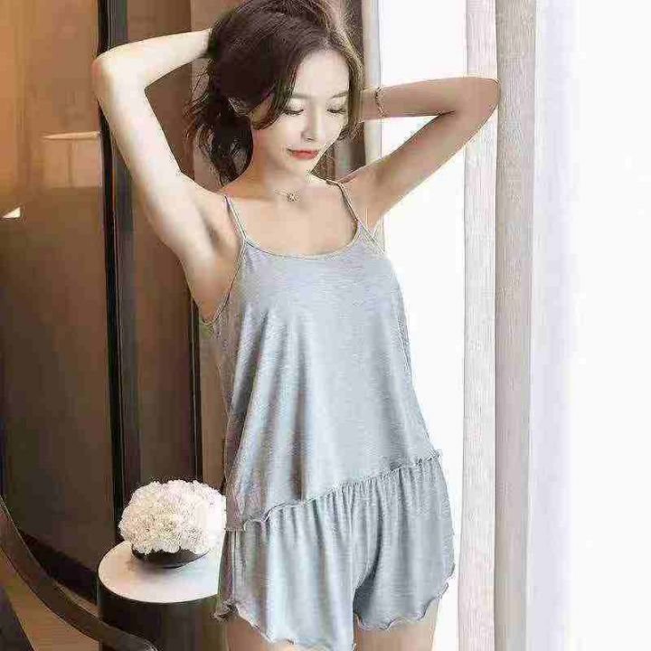 夏季性感吊带短裤女薄款睡衣两件套大码春秋家居服套装(灰色为主)