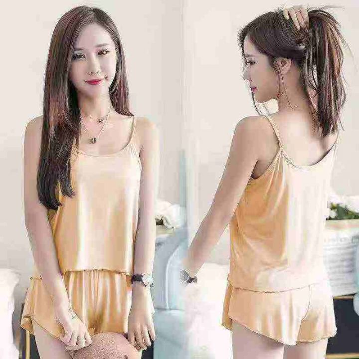 夏季性感吊带短裤女薄款睡衣两件套大码春秋家居服套装...