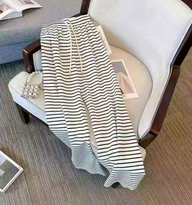 ☕️1200条全清9.5元,夏季休闲裤新款慵懒风宽松直筒高腰阔腿条纹裤子女拖地长裤,分货100件打包9.9元 ,均码 黑色 白色 冰丝面料 ,独立包装