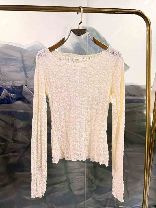 高弹力蕾丝长袖T恤打底衫女秋新款性感镂空修身上衣,无瑕疵,防水袋装,S -xL码,680件左右,清仓价2.99