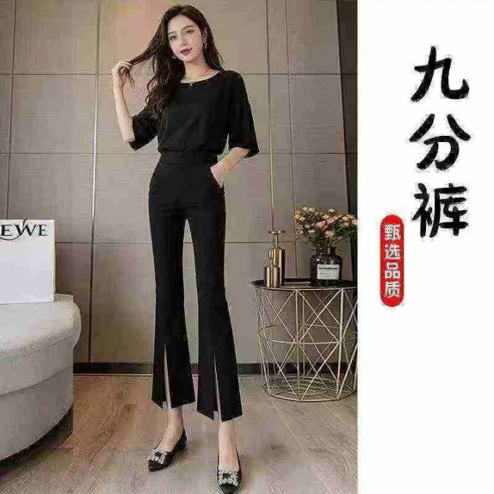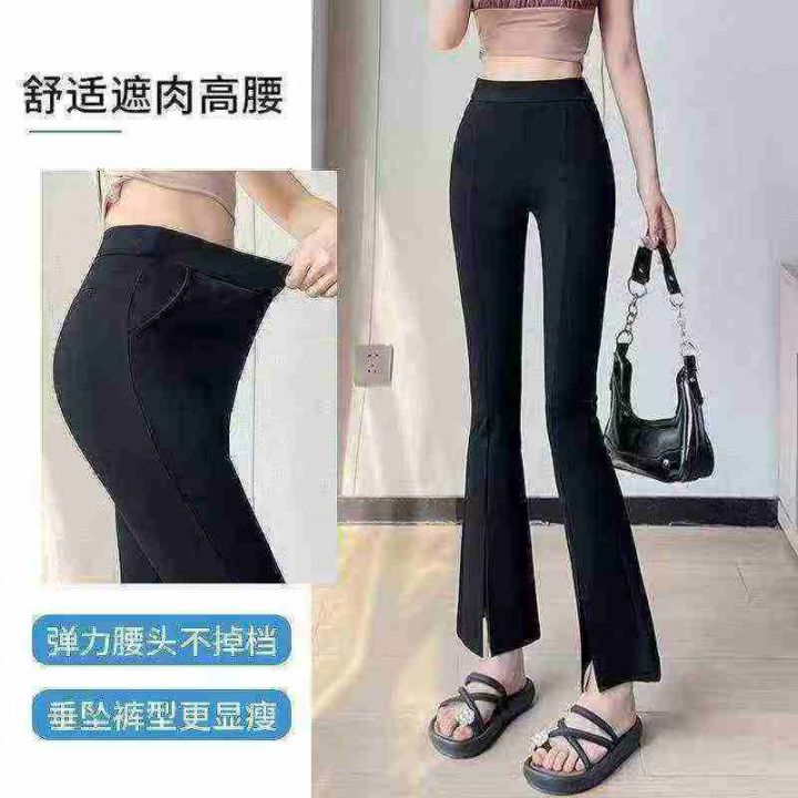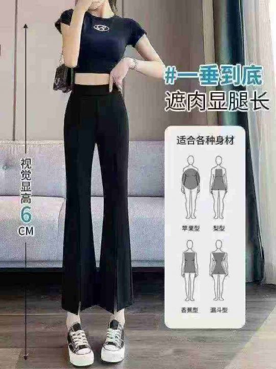 4820条新款黑色微喇裤女春秋夏季小个子高腰显瘦弹力九分开叉喇叭裤 ,单款单色,S一6XL,有码数清单,独立包装,内里包边料子有弹力,全清8.8分货加1