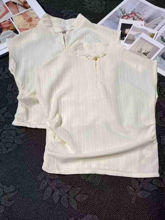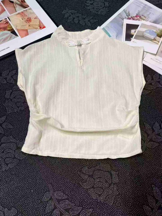 新中式国风棉麻短袖衬衫女