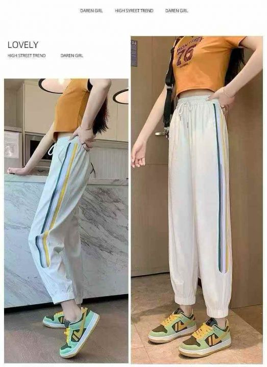 全清价7.9元运动裤女夏季薄款2026新款时尚洋气侧边条纹抽绳束脚休闲裤 数量...
