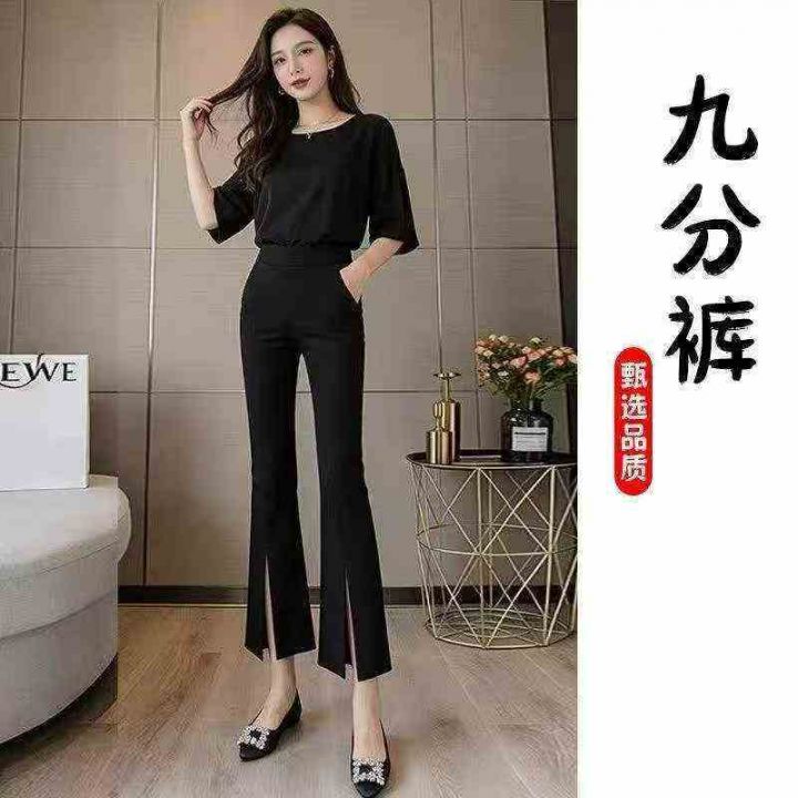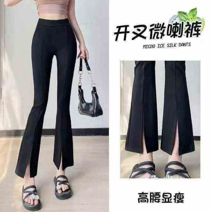 4820条新款黑色微喇裤女春秋夏季小个子高腰显瘦弹力九分开叉喇叭裤 ,单款单色,S一6XL,有码数清单,独立包装,内里包边料子有弹力,全清8.8分货加1