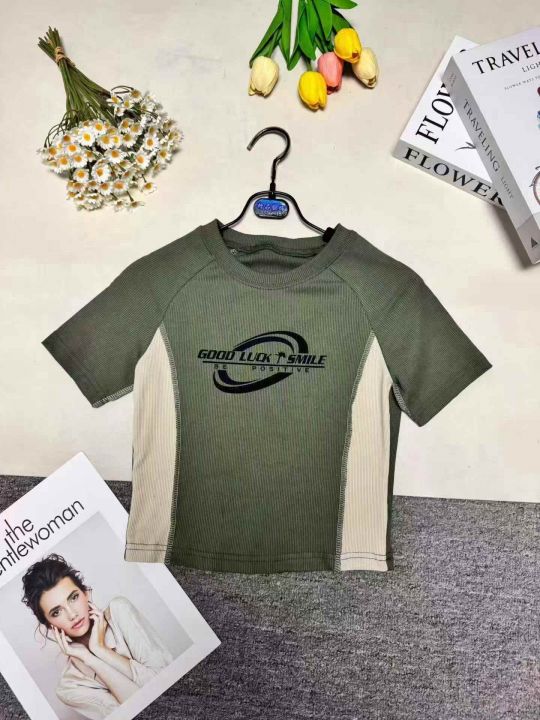 时尚洋气修身显瘦短款辣妹印花短袖T恤,图片款,品质好,工厂原单,5件一包
