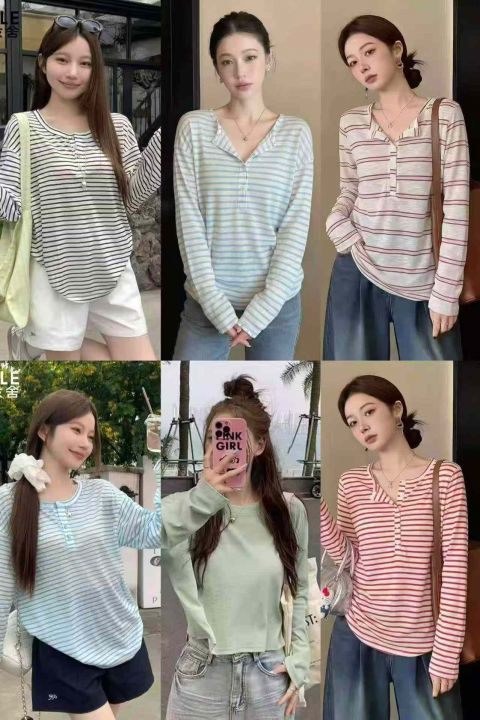 全清6.9元韩版V领钉珠烫钻长袖T恤女款 1913件 1-7码 分货➕1 大货黑色少...