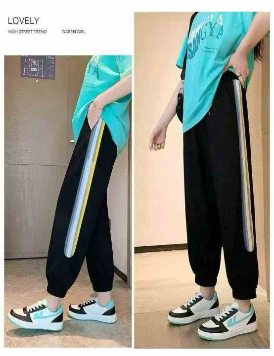 运动裤女夏季薄款2026新款时尚洋气侧边条纹抽绳束脚休闲裤 数量:682条 码数:1-7码 分货➕1独立包装(货号331#69)