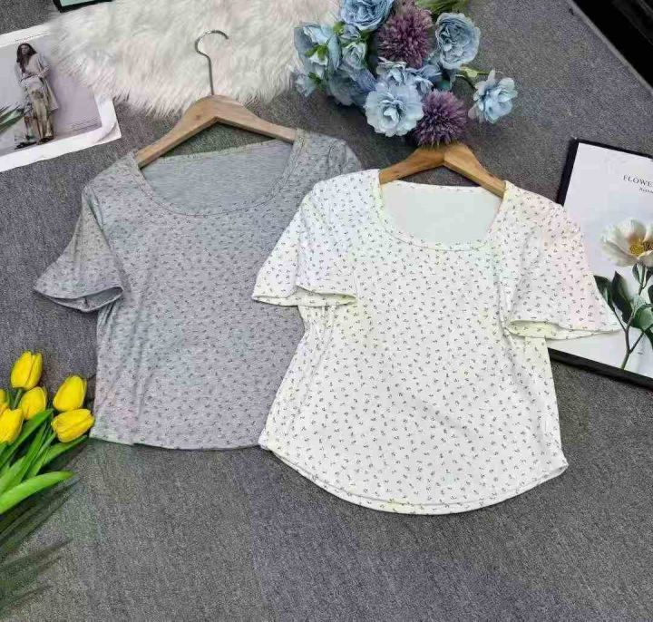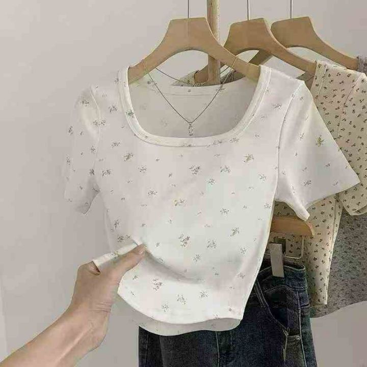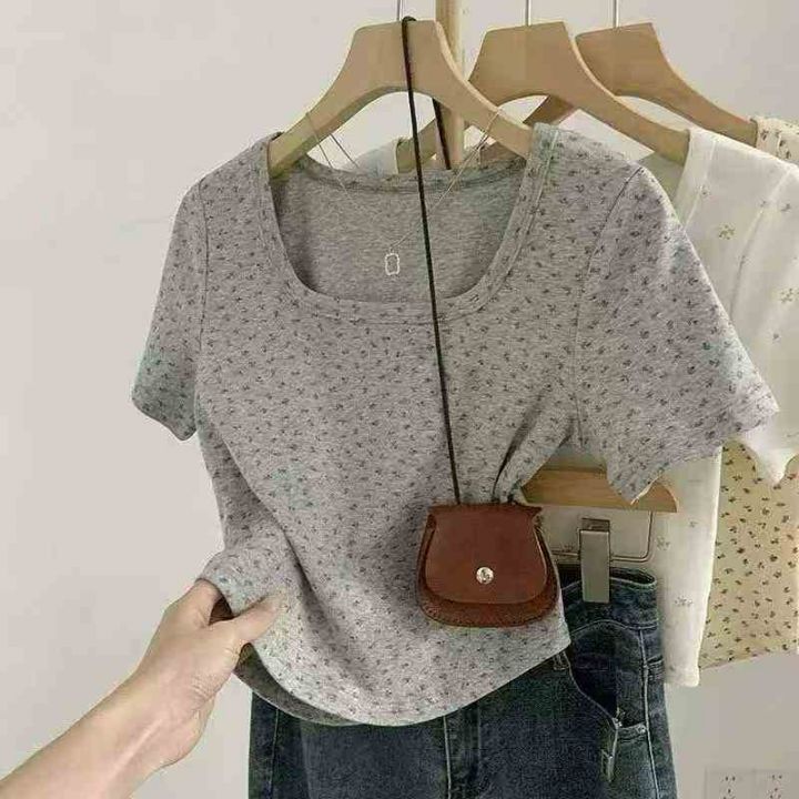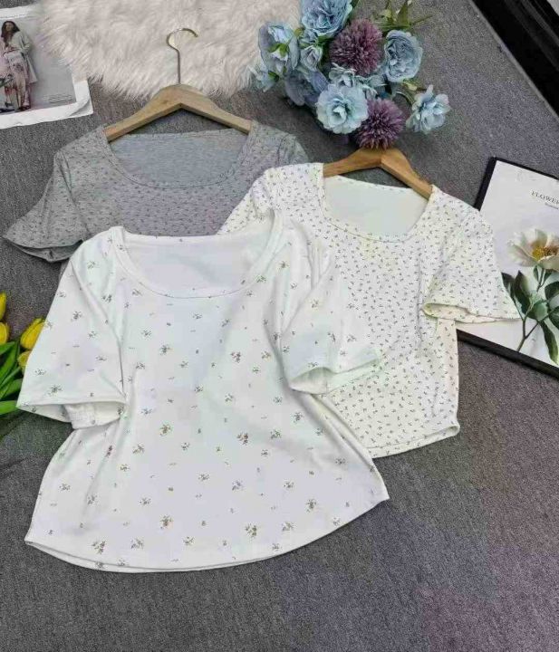 韩系碎花正肩圆领短袖t恤女早春季修身内搭叠温柔风上衣 数量:856件 码数:2/3/5码 大货浅颜色为主,5码多 独立包装 (货号:119#32)
