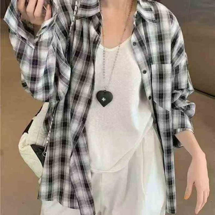 韩版港风复古风宽松格子长袖衬衫,数量:124件,码数: 1-5相当于S-M-L-XL-2XL,有独立包装,4.5元清