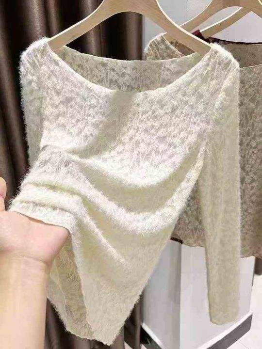 高弹力蕾丝长袖T恤打底衫女秋新款性感镂空修身上衣,无瑕疵,防水袋装,S -xL码,680件左右,清仓价2.99