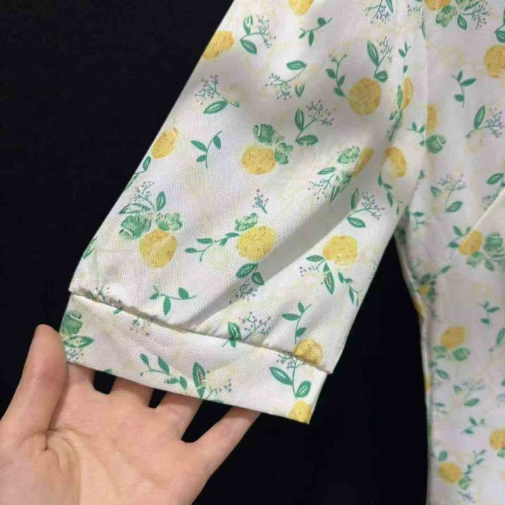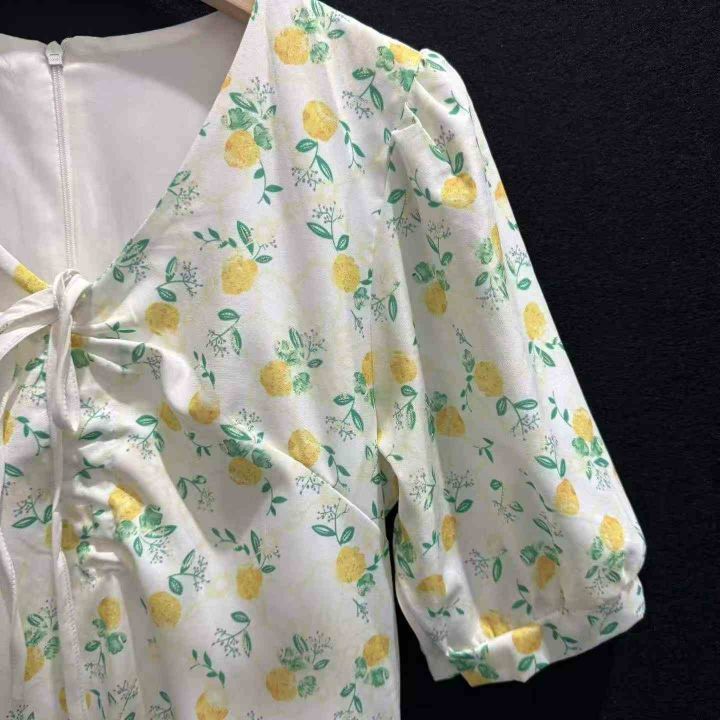 女装连衣裙整垮辣妹装大童装清新黄绿碎花前胸绑带背后拉链连衣裙