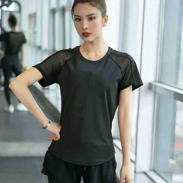 1400件运动健身拼结网纱速干瑜珈短袖。面料柔软舒适,高弹力,品质好。S 一2XL,独立包装带吊牌,全清2.9