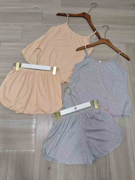 夏季性感吊带短裤女薄款睡衣两件套大码春秋家居服套装(灰色为主)