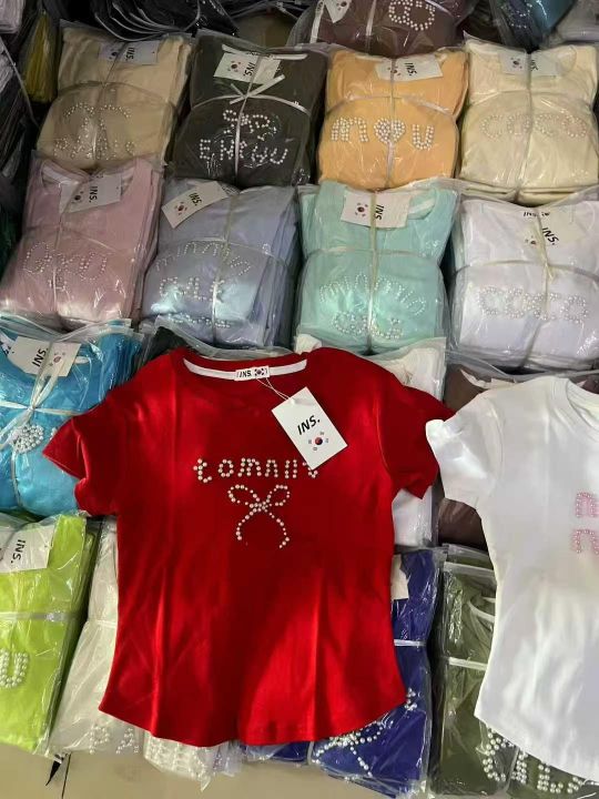 ☕️纯棉辣妹短袖T恤重工钉珠辣妹T恤8600件全清9.9元 分货10.9元,高弹力均码,独立包装统一吊牌,小整款多花型颜色[庆祝][庆祝][庆祝]全部每一件都有带工艺花型设计[勾引][勾引][勾引]