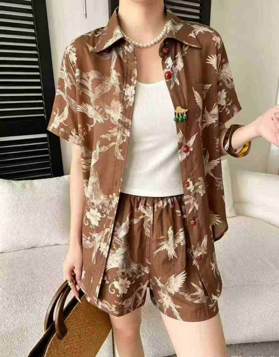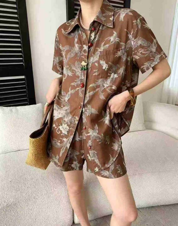 ☕️新中式套装女款松弛感苎麻印花衬衫短裤两件套夏季减龄穿搭一整套424套全清8.8元,码数M到XXL,单款2色,正品独立包装[庆祝][庆祝][庆祝]