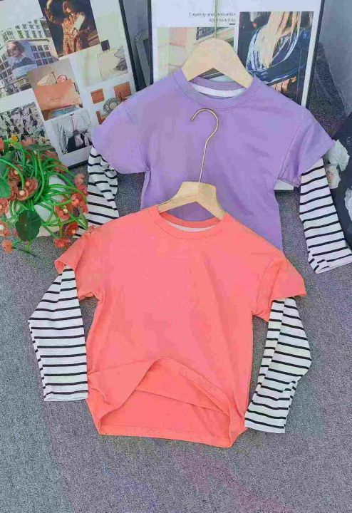 418件童装拼接袖打底衣,码数90~150码,10件一包装,单款两色。