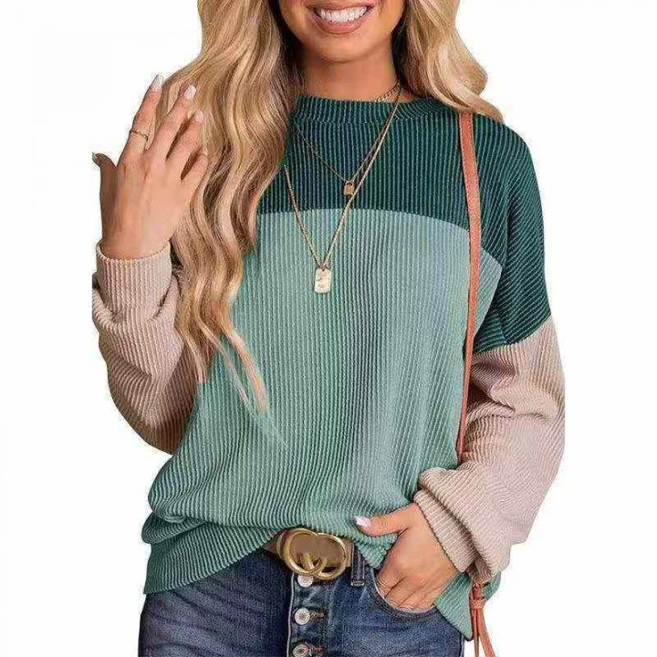 4.8清⭐394件大版型女装春秋季长袖小众撞色设计休闲套头圆领卫衣,整款2个...