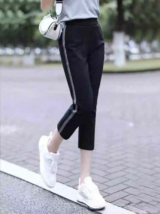4.8清⭐260条跨境电商下架女装春夏季直筒束脚银边亮片七分裤长裤,图片两个...