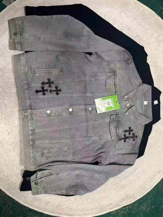 牛仔外套男美式水洗春秋新款韩版宽松夹克设计感小众十字架上衣潮,独立包装,677件,全清15.8分货+1