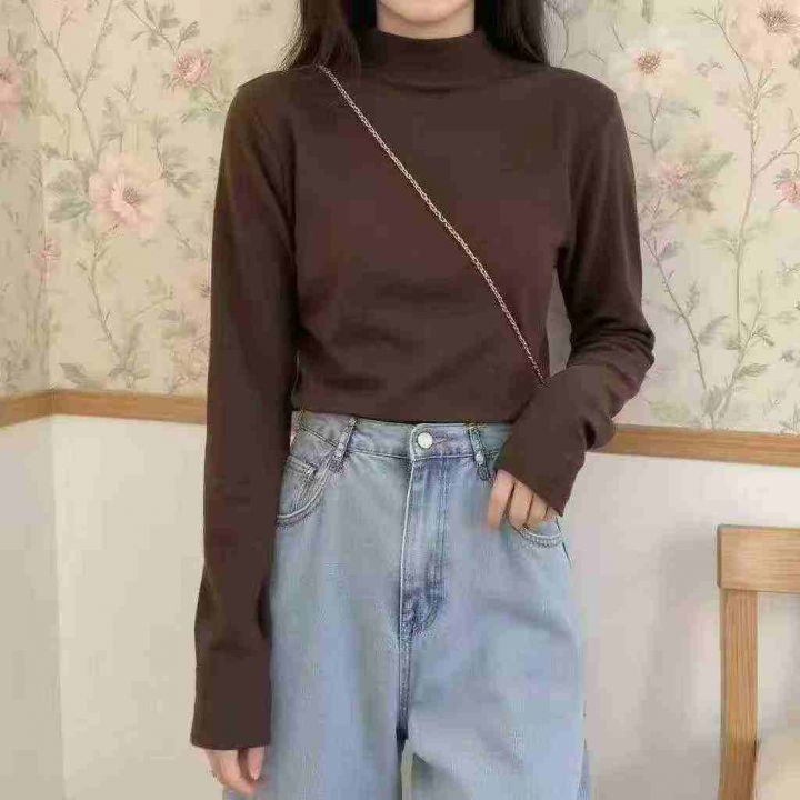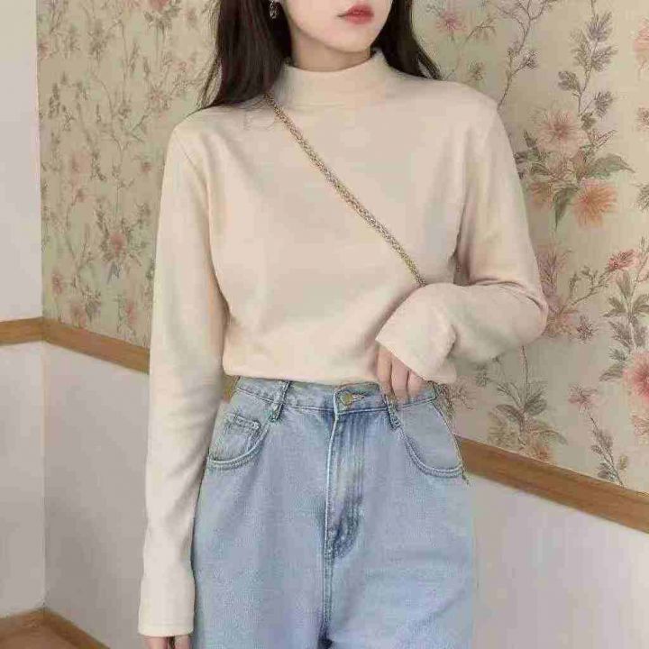 全清价5.9秋冬德绒长袖百搭显瘦半高领内搭上衣刺绣印...