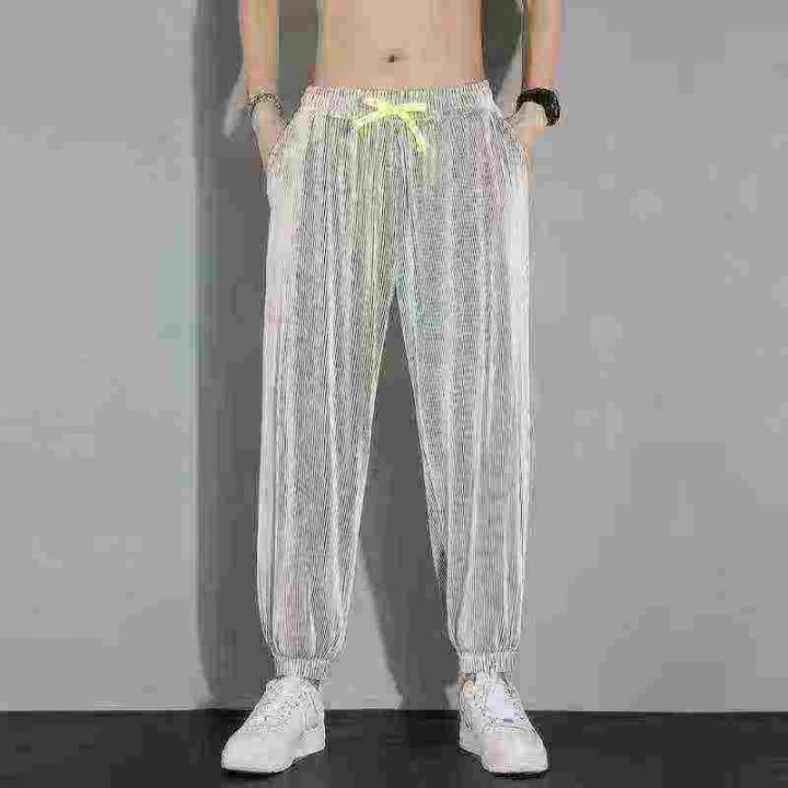 全清6.5元,6538条\'M-5XL裤子夏季男休闲薄款韩版ins潮牌冰丝条纹运动大码弹力宽松哈伦裤\'分货➕0.5
