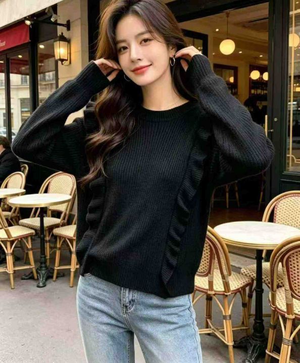 春季新款复古法式宽松百搭显瘦木耳边设计款圆领套头毛衣,独立包装带吊牌,码数S--XL码,面料软糯厚实弹力大,164件,全清6.9元超低价秒杀!