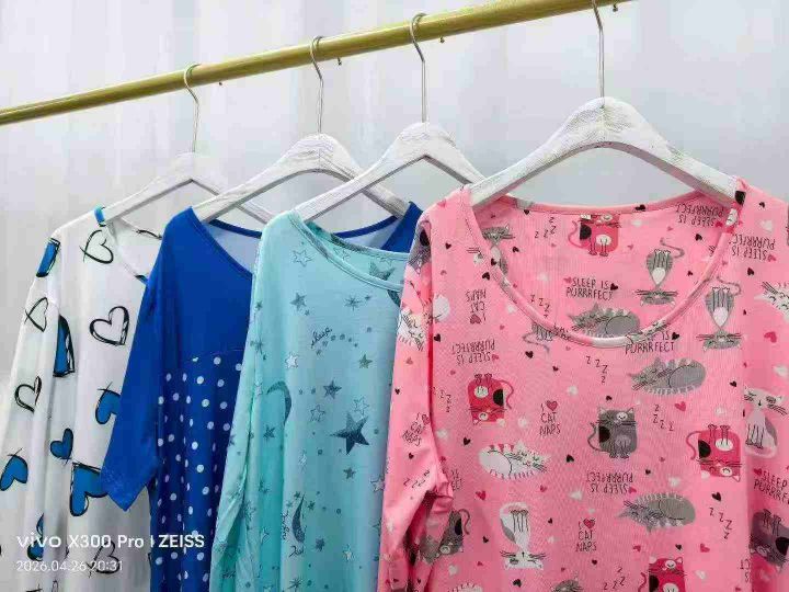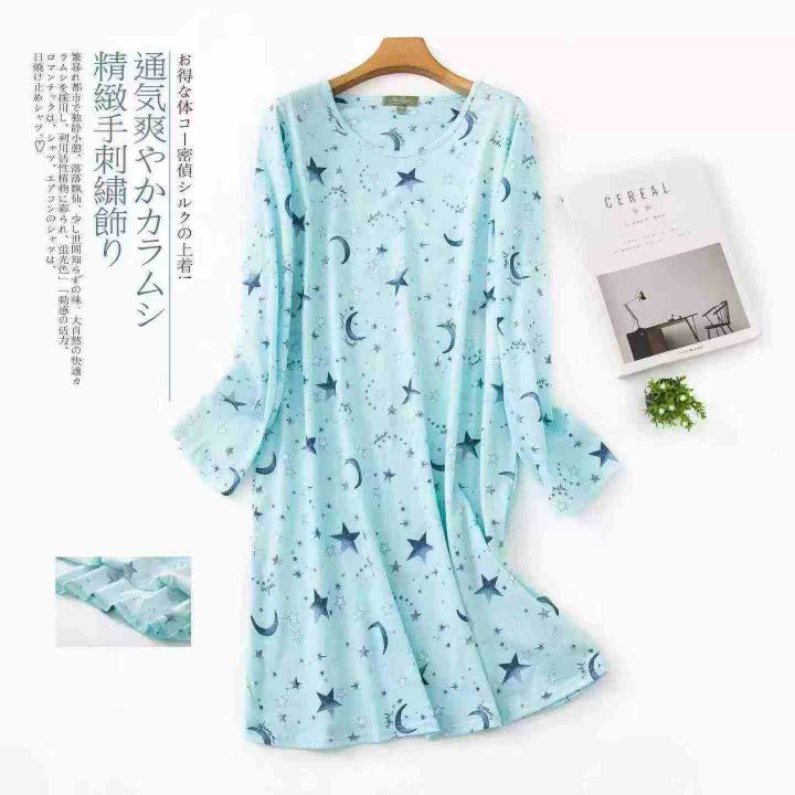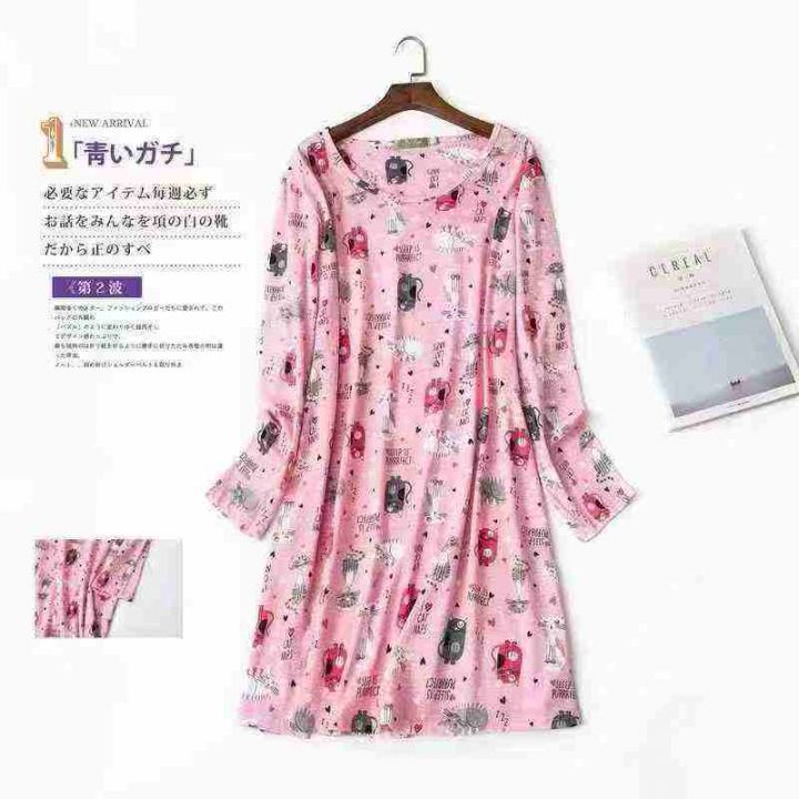 夏款长袖睡裙大码可爱卡通家居服圆领中裙宽松睡衣女.独立包装.货品干净好看.码数:S—5XL:数量:245件.清[庆祝]