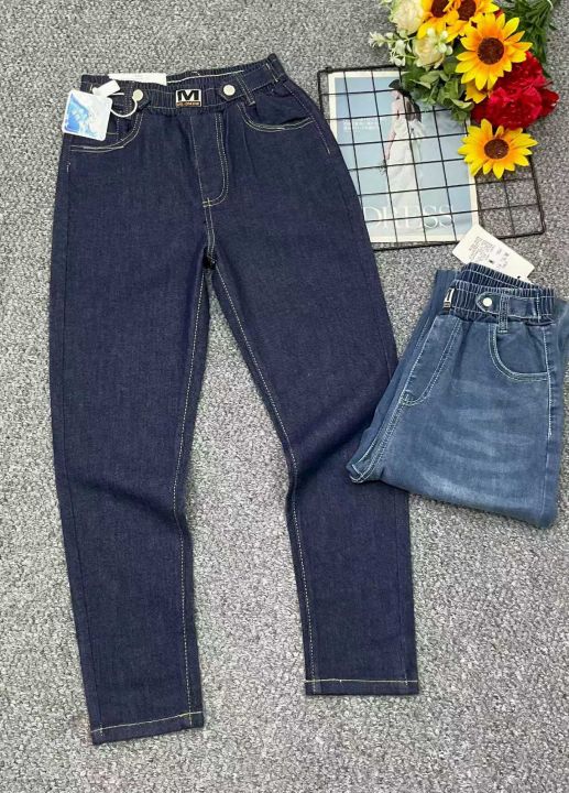 春夏季新款洗水棉高腰宽松百搭松紧腰哈伦牛仔老爹裤,独立包装带腰卡,码数...