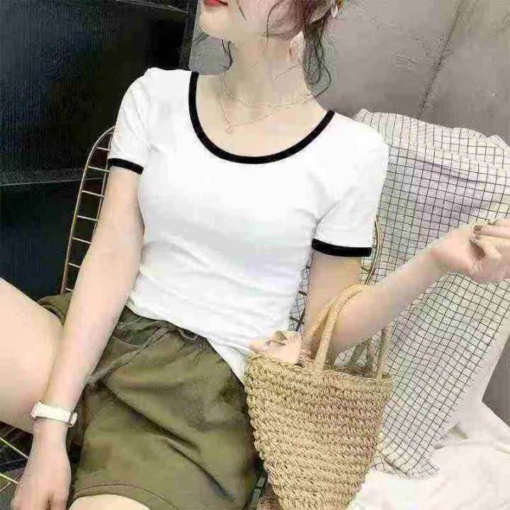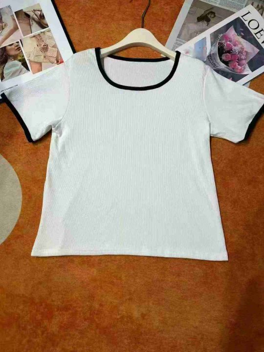 黑白色拼接圆领短袖 85件,全清5.8元,码数:(S到XXL)图片色,十件一个包装,网红拼接撞色短袖T恤女2026夏季新款性感修身圆领百搭上衣