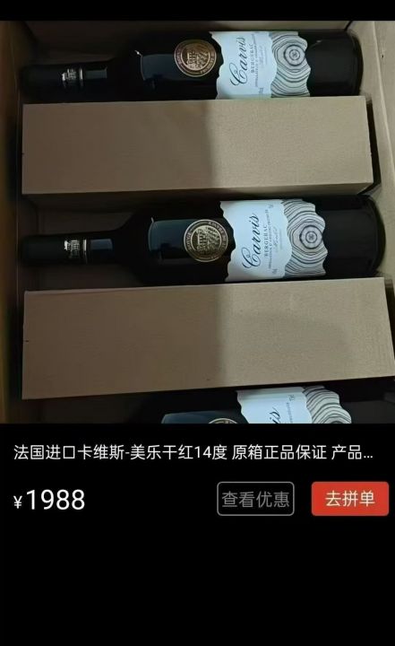 法进国口红卡酒维斯,14.5度。一箱6瓶,货发...