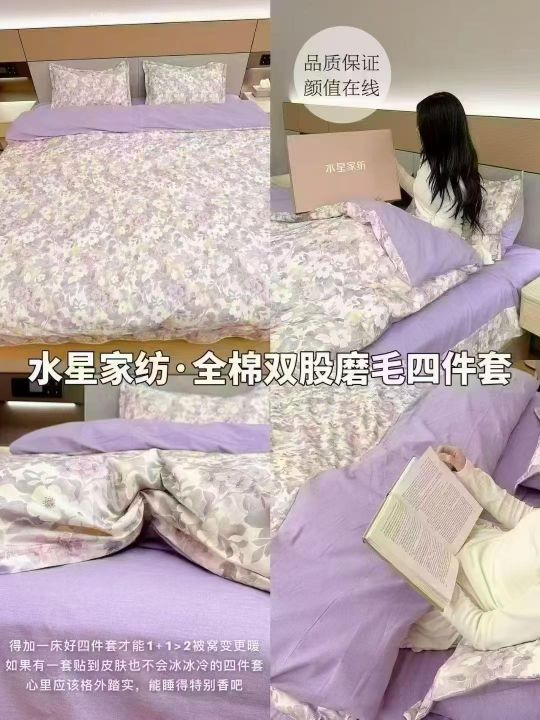 水星家纺·全棉双股磨毛四件套面料:双股纯棉磨毛规格...