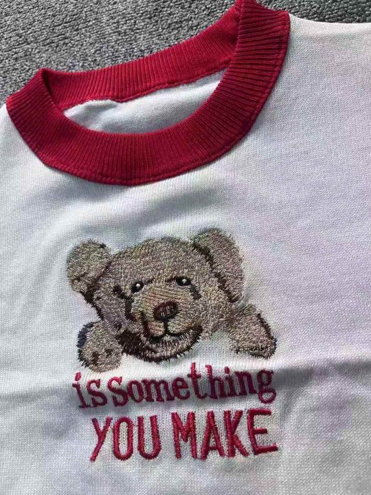 481件小熊刺绣针织网红短袖,红白撞色,均码110斤左右...