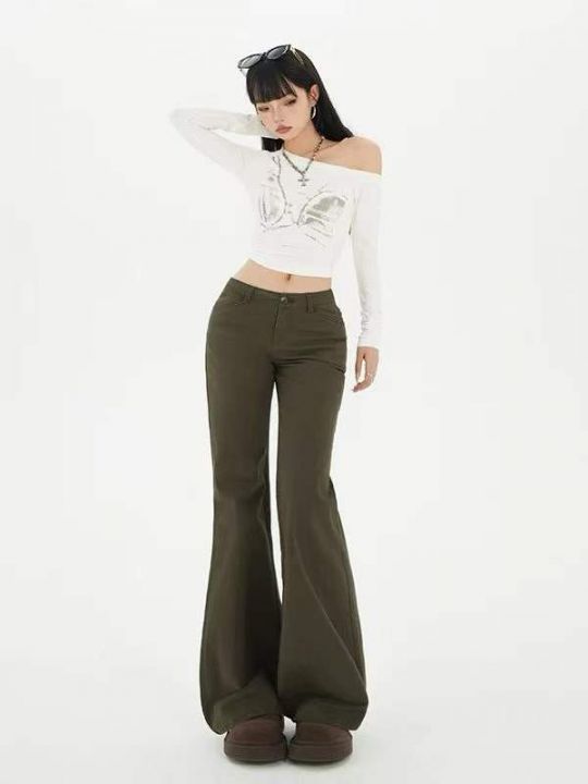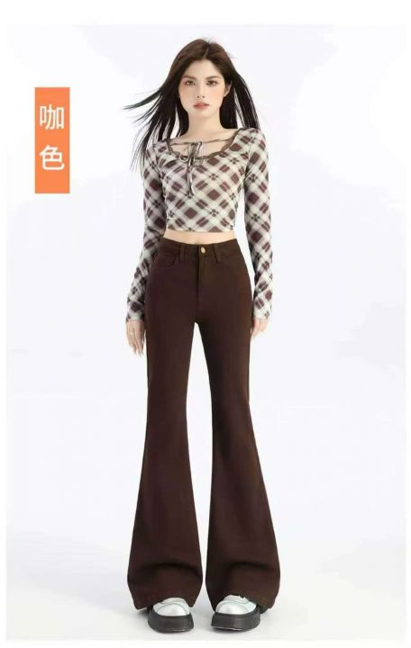 高弹力紧身微喇牛仔裤女高腰提臀修身辣妹美拉德喇叭裤...