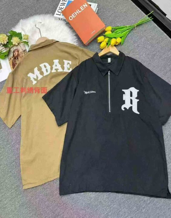 工装半拉链短袖polo衫男宽松美式刺绣翻领T恤,前后重工刺绣工艺, 数量:3022件 码数:m-xL码,版型够大,分货加价,独立包装(货号322#26)