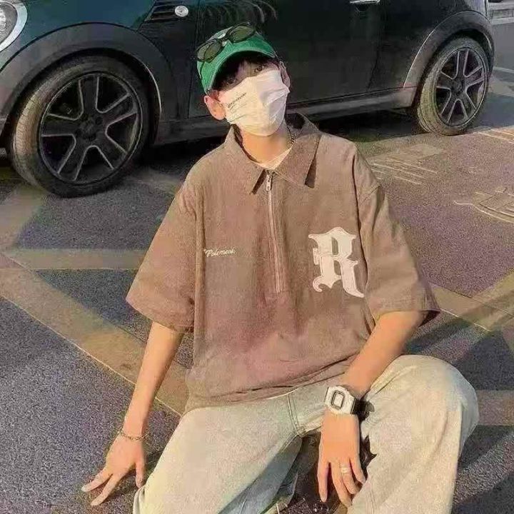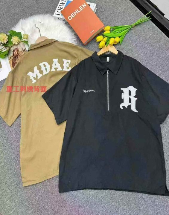 工装半拉链短袖polo衫男宽松美式刺绣翻领T恤,前后重工刺绣工艺, 数量:3022件 码数:m-xL码,版型够大,分货加价,独立包装(货号322#26)