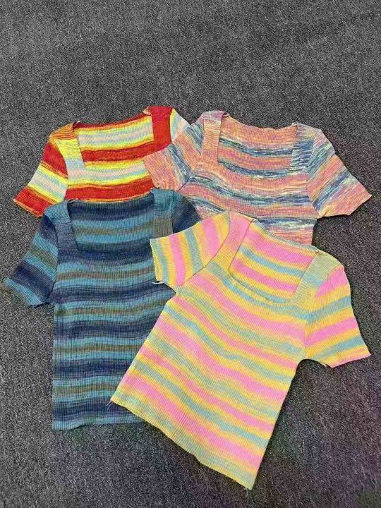 1140件靓妹条纹针织短袖,夏季新款,修身显瘦,弹力好,短款设计,面料柔软不扎人,穿着舒服,均码110斤左右,适合大部分身材,大货干净无瑕疵,全清4.8元,分1