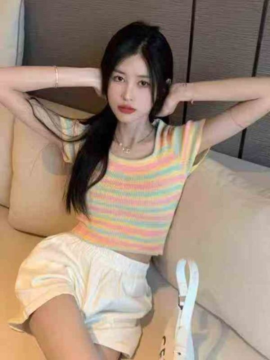 1140件靓妹条纹针织短袖,夏季新款,修身显瘦,弹力好...