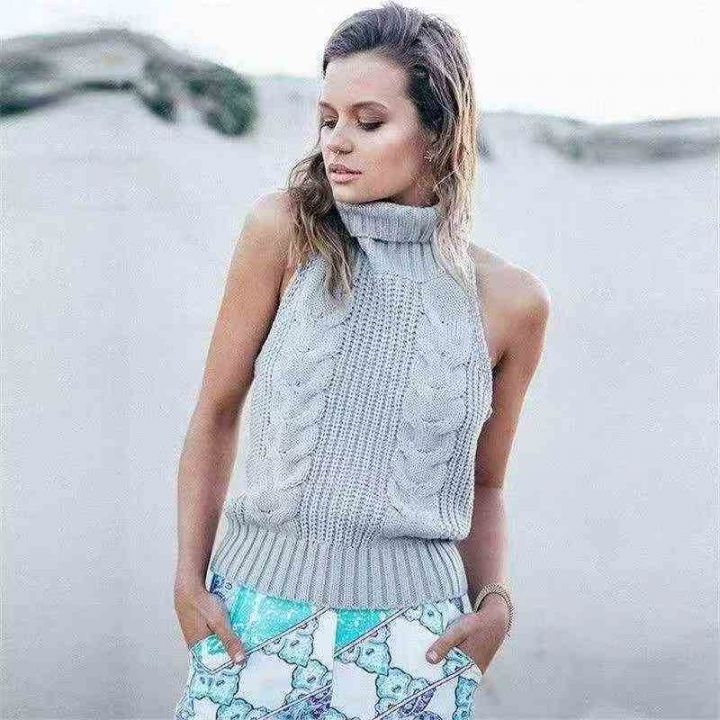 辣妹露背春夏秋冬高领性感无袖针织套头毛衣,面料质感很好百搭大货干净带独...