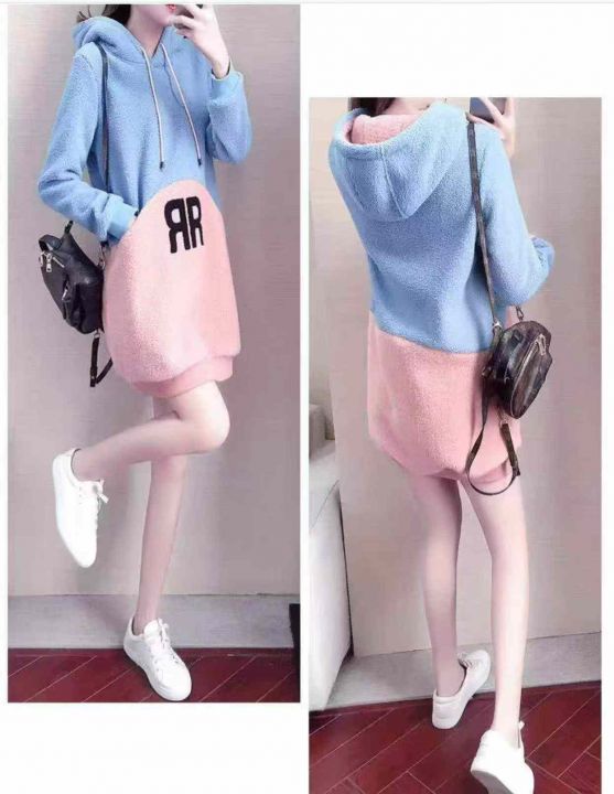 羊羔绒长款过膝加绒连帽卫衣 ,数量:140件,码数: S-M-L-XL-2XL,有独立包装 5.9元清